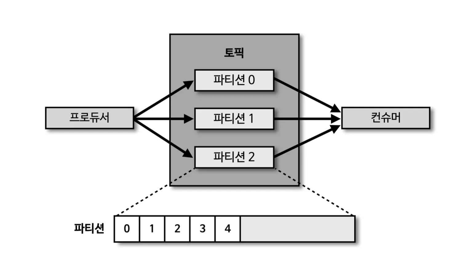카프카 내부에 데이터가 저장되는 파티션의 동작은 FIFO 방식의 큐 구조와 유사하다.