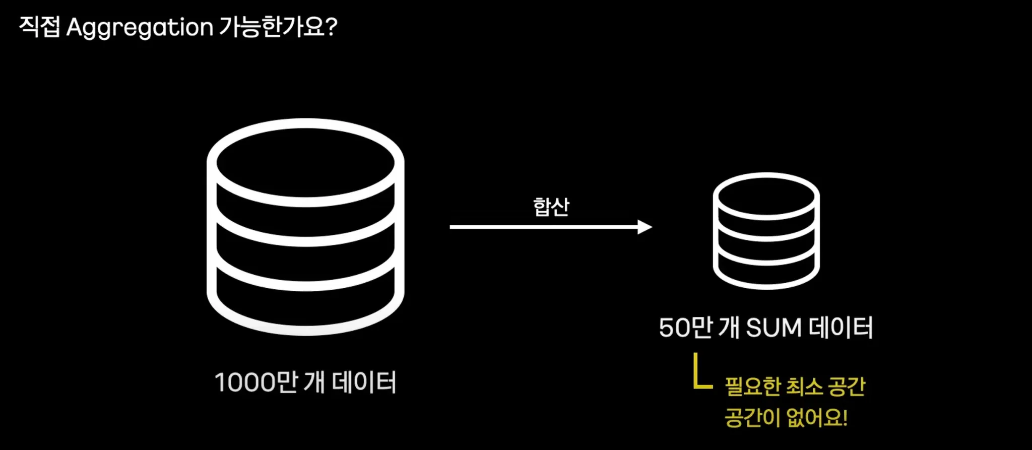 1000만 개의 데이터를 합산하여 50만 개 SUM을 어플리케이션에서 하게되면 공간이 없고, OOM을 유발할 수 있다.