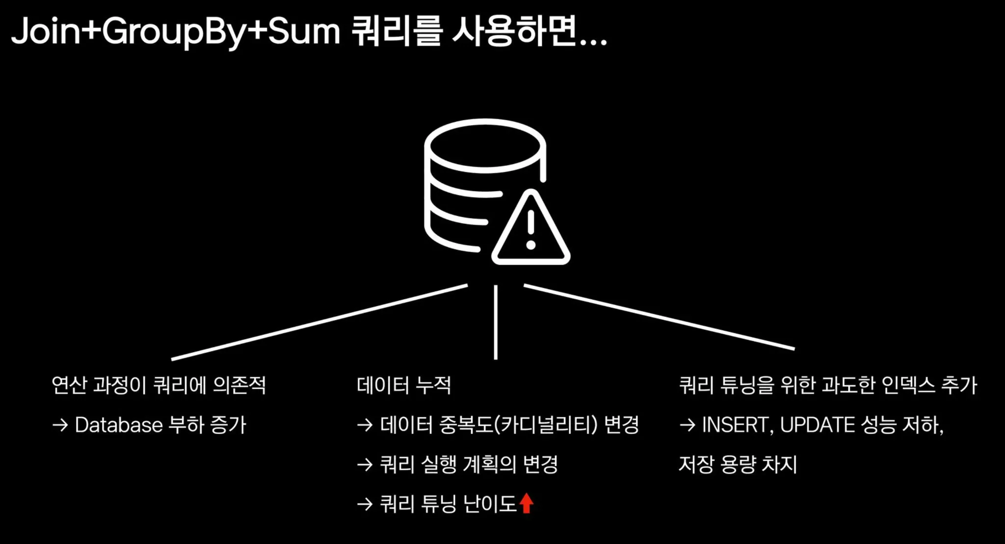 데이터가 많아지고 쿼리가 복잡해지면 문제가 발생한다.