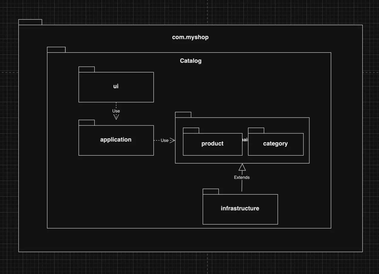 카탈로그 하위 도메인이 상품 에그리커트와 카테고리 애그리커트로 구성 될 경우 아래 그램과 같이 도메인을 두 개의 하위 패키지로 구성할 수 있다.