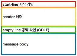 Start-line = request-line(요청메시지) /status-line(응답 메시지)