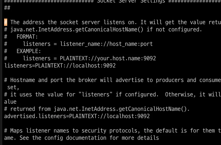 listeners : 카프카 브로커가 통신을 통해 우리가 받을 IP를 뜻함