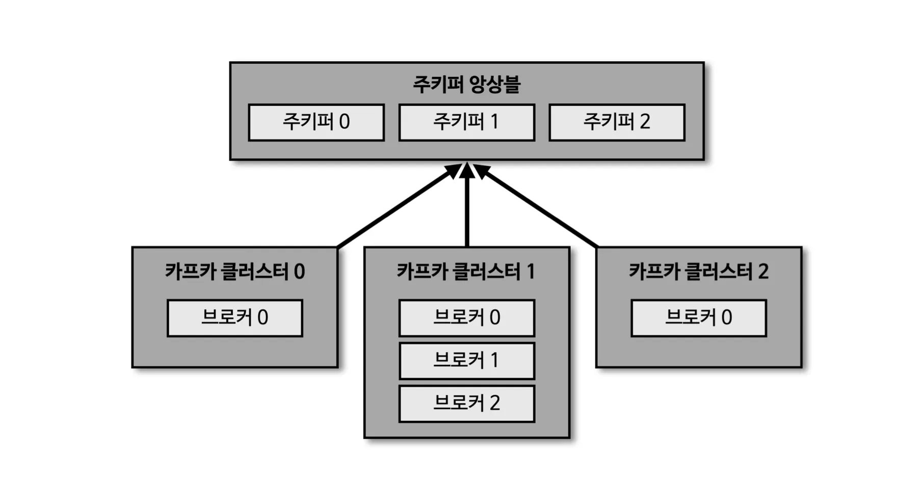 여러개의 카프카 클러스터가 연결된 주키퍼