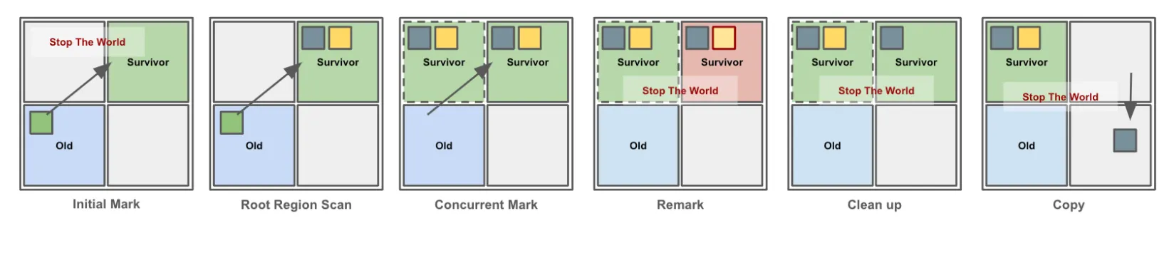 Copying: 여러 스레드를 사용해 살아남은 객체를 Survivor 영역으로 병렬로 복사합니다.
