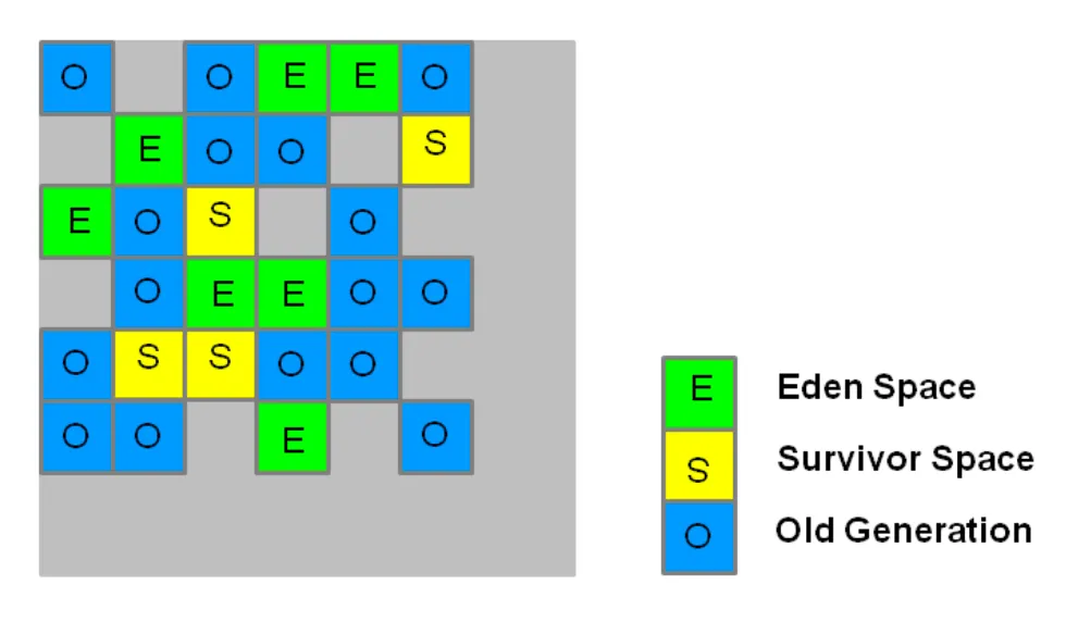 Survivor 공간 (S0, S1): Eden 공간에서 살아남은 객체가 이동하는 공간입니다. S0과 S1은 두 개의 Survivor 공간으로 번갈아 사용됩니다.
