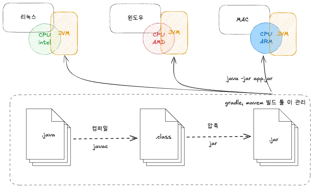 JVM을 실행할 수 있는 환경이라면, 어디든지 Jar파일을 동작 시킬수 있습니다.