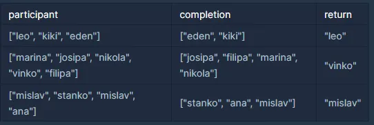 예제 #3"mislav"는 참여자 명단에는 두 명이 있지만, 완주자 명단에는 한 명밖에 없기 때문에 한명은 완주하지 못했습니다.