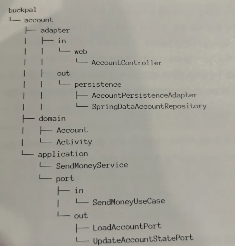 사실 계층에 의핸 피킨징 방식보다 아키텍처의 가시성을 훨씬 더 떨어뜨린다. 어댑터를 나타내는 패키지명이 없고, 인커밍 포트, 아웃고잉 포트를 확인할 수 없다. 도메인 코드와 영속성 코드 간의 의존성을 역전시켜 SendMoneyService가 AccountRepository 인터페이스만 알고 있고 구현체는 알 수 없도록 했음에도 불구하고, package-private 접근 수준을 이용해 도메인 코드가 실수로 영속성 코드에 의존하는 것을 막을 수 없다.