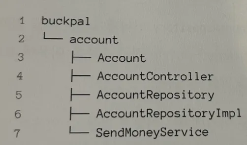 각 기능을 묶은 새로운 그룹은 account의 같은 레벨의 새로운 패키지로 들어가고, 패키지 외부에서 접근되면 안 되는 클래스들에 대해 package-private 접근 수준을 이용해 경계를 강화할수 있다.