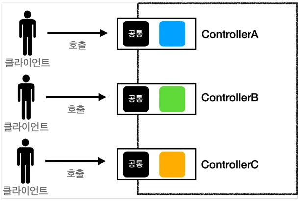 모든 컨트롤러에서 뷰로 이동하는 부분에 중복이 있고, 깔끔하지 않다.