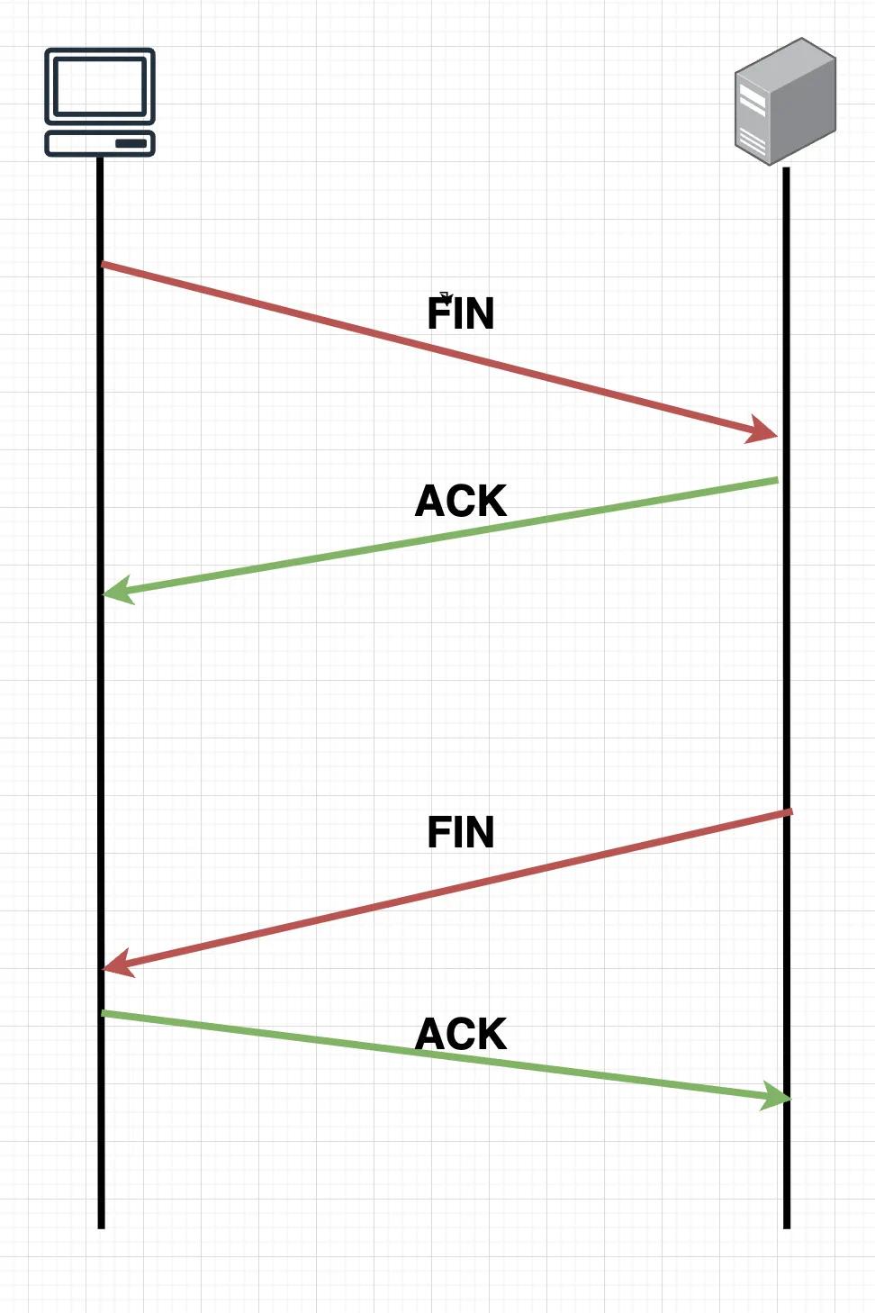 첫 번째로 FIN 요청을 보낸 쪽이 이 FIN을 확인하고, 마지막 ACK 패킷을 보내면서 연결이 종료됩니다.
