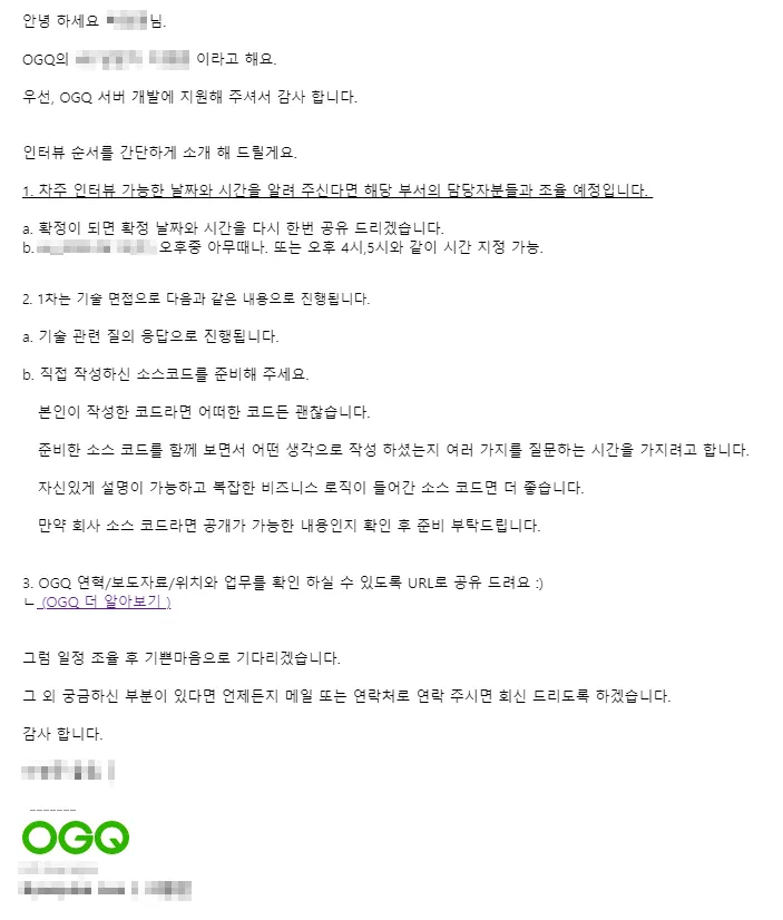 참고로 OGQ의 채용프로세스는 아래와 같다.