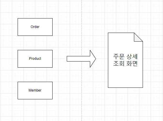 주문 상세 조회 화면처럼 여러 애그리거트에서 데이터를 가져와 출력하는 기능을 구현하기에 고려할 게 많아서 구현을 복잡하게 만든다.
