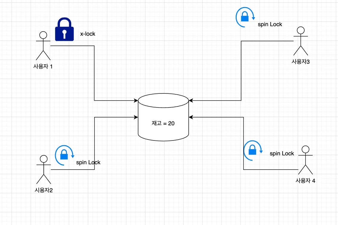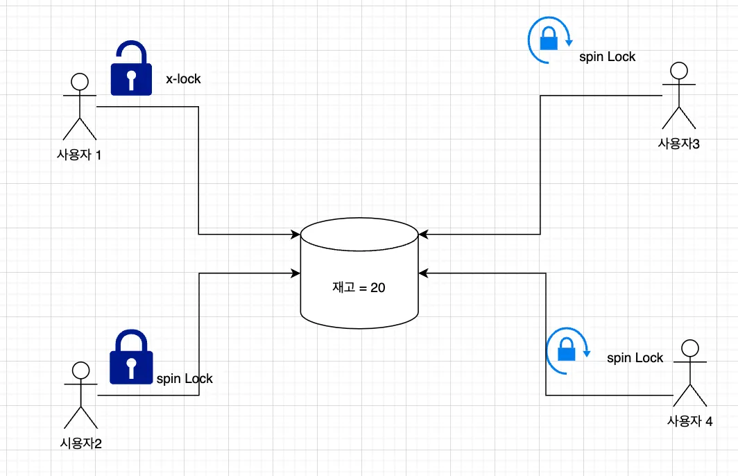 사용자가 수정할 때 까지 다른 사용자는 스핀락으로 대기를 하고있습니다.