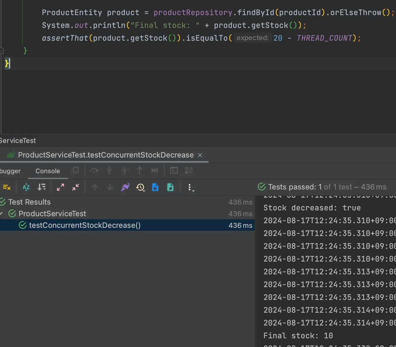 아래 코드는 동시성 테스트를 위한 코드입니다.