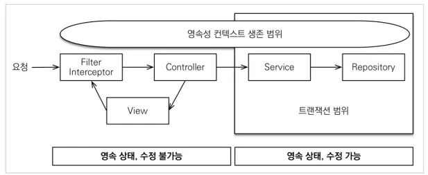 보통 서비스 계층에서 트랜잭션을 유지한다. 두 서비스 모두 트랜잭션을 유지하면서 지연로딩을 사용할 수 있다.